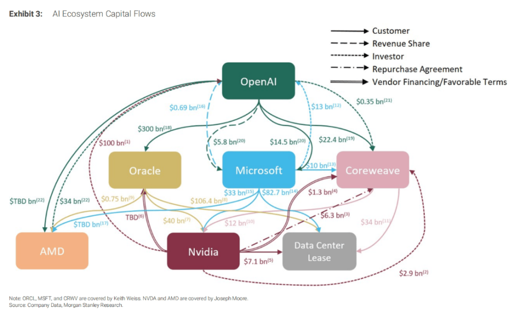 10月6日,OpenAI宣布将通过最多1.6 亿股AMD普通股的认股权证形式,与AMD展开深度合作,后者将为其下一代AI基础架构提供算力支持,目标规模高达6千兆瓦GPU。仅一周后(10月13日),OpenAI又宣布与半导体巨头博通(Broadcom)联合开发定制化AI加速器,规模可达10千兆瓦。通过这项合作,OpenAI能够将自身在前沿模型研发与产品化过程中的经验直接嵌入硬件设计中,从底层释放出更高层次的性能与智能潜力。