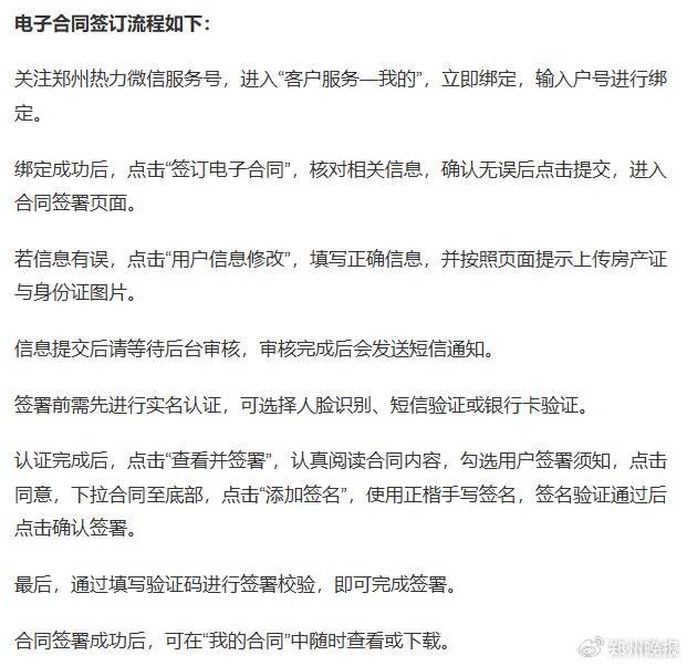 2025~2026供暖季开始,郑州热力全新推出电子合同服务,新用户签约全面转为线上电子合同。(此项电子合同签约仅适用于新用户,已供热用户无须重新办理。)