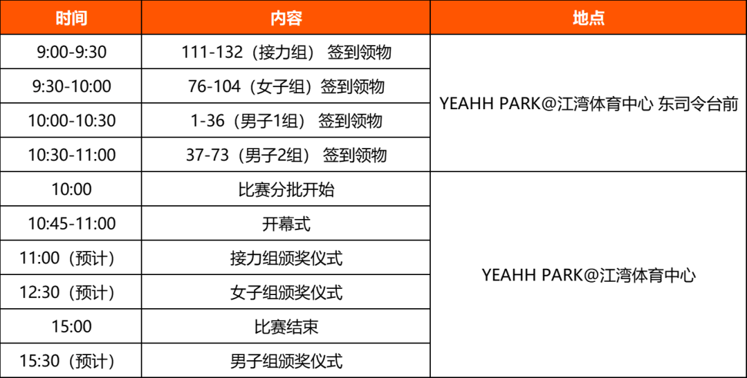 3)如果游泳+骑行超过关门时间(32分钟),选手依然可以继续完成跑步项目,成绩将不计入排名。