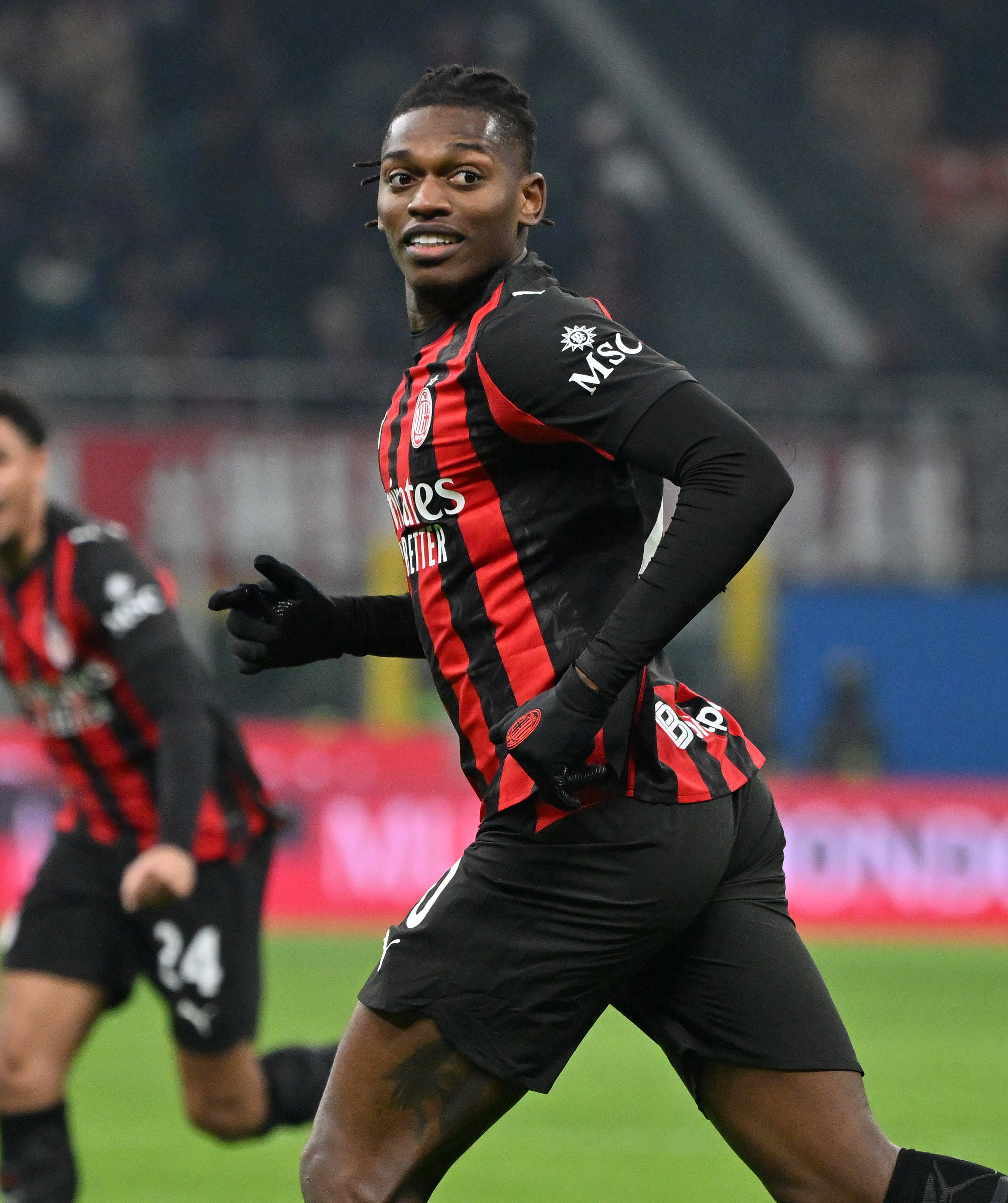 1月8日,AC米兰队球员莱奥庆祝进球。 新华社发(阿尔贝托·林格利亚摄)