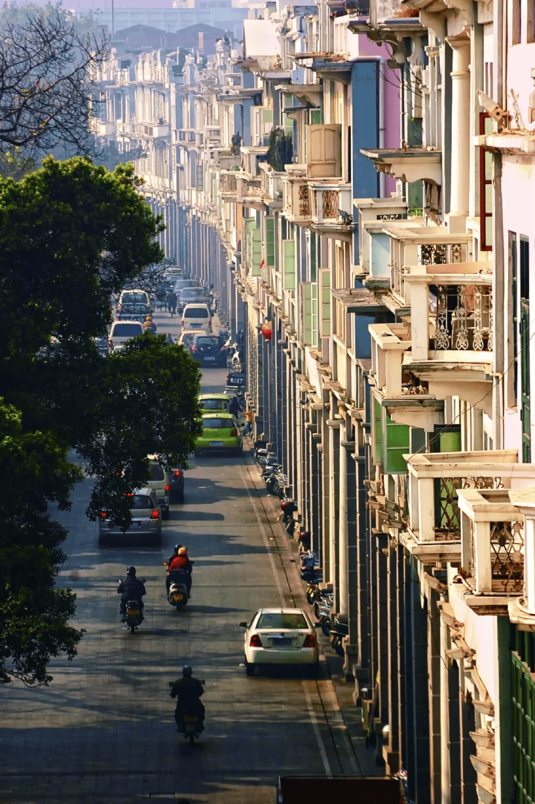 这些骑楼巧妙地融合了中式屋身与西式柱廊,巴洛克山花、罗马柱与满洲窗和谐共处,勾勒出岭南天际线上最动人的混血风景线。