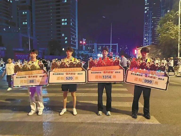▲时代少年团演唱会散场时,歌迷们走几步就能看到数字指示牌,提醒他们与地铁站的距离。甘井子区文旅局供图