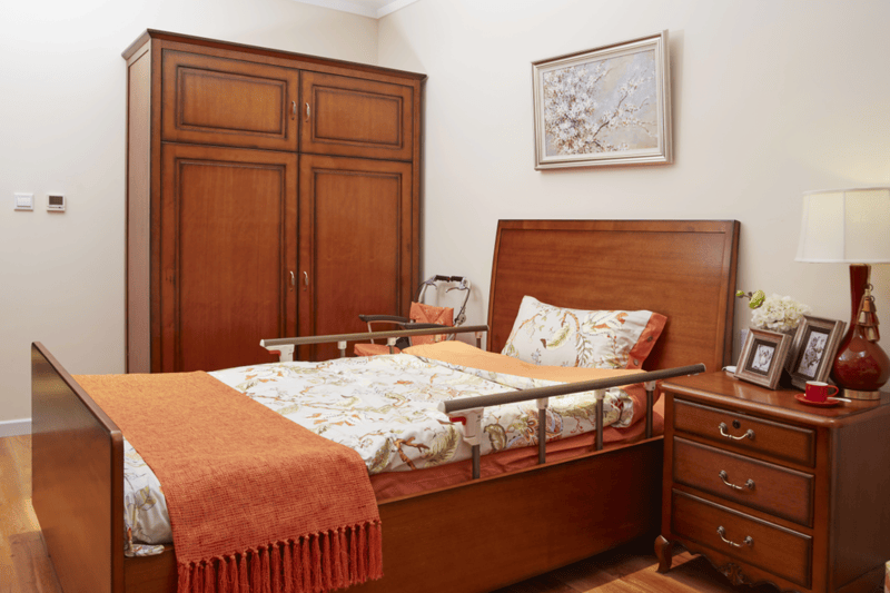 舒适居住|配备多功能医疗床、安全呼叫设备,房间温馨舒适,适配不同照护等级需求;