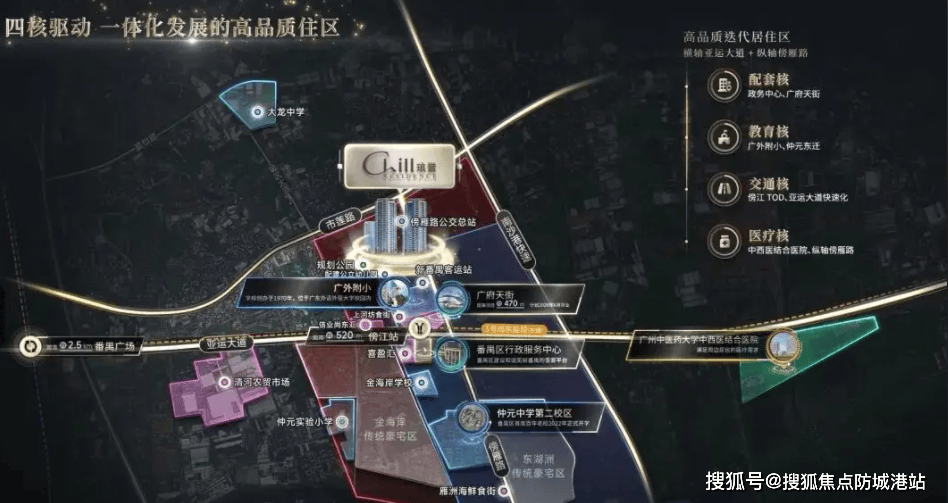 2. 区位优势突出,交通便捷:项目地处番禺广场与番禺客运站双TOD交汇地带,步行700米可达地铁3号线站直达番禺广场枢纽站,2站到珠江新城、4站至琶洲,公共交通通勤便捷;紧邻傍雁路、亚运大道,自驾出行顺畅;小区门口有十余条公交线路,出行方式多样,完美覆盖不同购房者的出行需求。