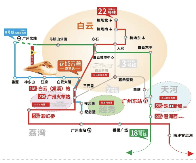 :作为广州最快的地铁线站到达荔湾区,更可换乘18号线站直达珠江新城冼村站。这将大大缩短白云北部与市中心的时间距离,使