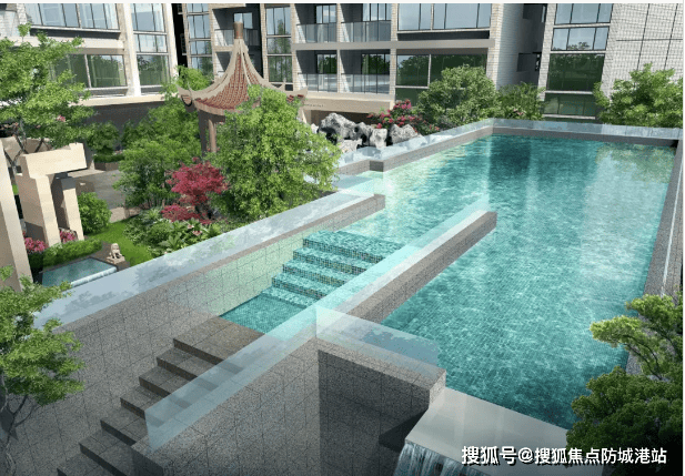 步入社区,便是山水比德设计院匠心打造的现代岭南艺术园林,以“游园·方寸间”为主题,构建“六廊八景三居游”的园林布局,将水间居游、廊间居游、林间居游的生活体验完美融合。园林内叠水瀑布潺潺流淌,搭配景观小径、休憩凉亭、四时繁花,一步一景、步移景异,仿佛置身于岭南古典园林之中,却又不失现代人居的便捷与舒适。园林中间打造板块内唯一空中花园双层悬浮泳池,Tiffany蓝的泳池水面与周边热带绿植交相辉映,畅泳之际可尽享园林美景,宛如度假一般的奇妙体验,成为社区内的核心景观亮点。