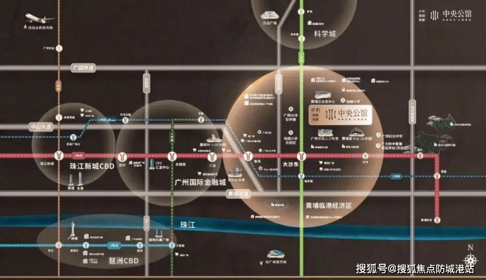 黄埔区,尤其是大沙东站周边,其价值早已不可估量。这里是广州轨道交通网络的超级枢纽,5号线号线二期在此交汇,形成了强大的“十字”交通动脉。5号线号线直达海珠琶洲及番禺万博,这意味着从中央公馆出发,3站即达天河,10站无需换乘直达珠江新城。这种极致的通勤效率,彻底打破了区域界限,让居住在黄埔成为连接全城繁华的最优解。