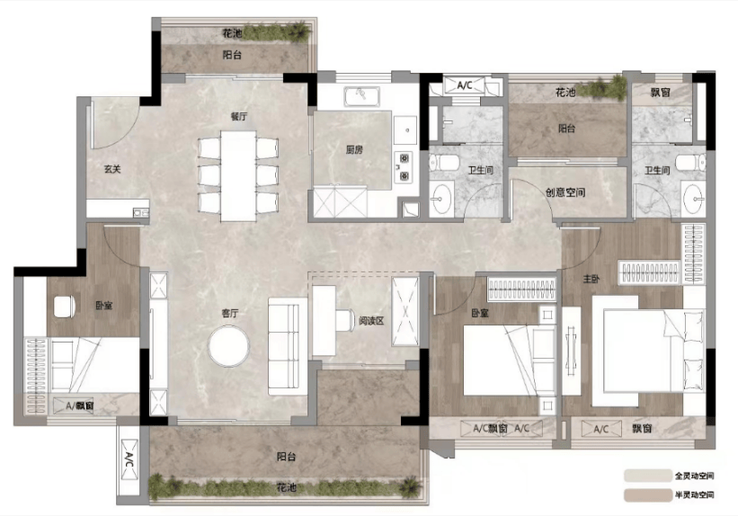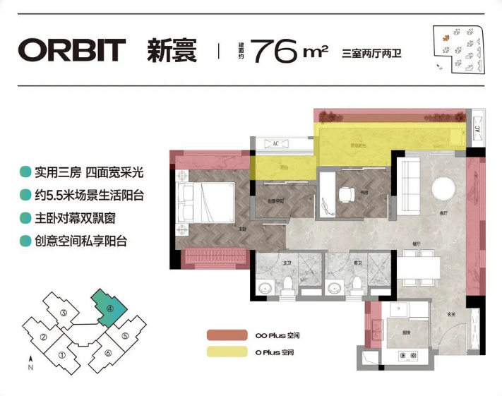 :从74㎡三房到122㎡五房,全覆盖不同家庭结构需求,满足从新婚夫妇到三代同堂的演变。