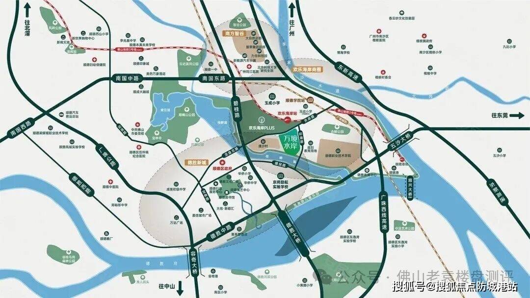 除了自然资源的稀缺性,项目的交通区位优势同样显著。项目紧邻碧桂路城市快速路,自驾出行极为便捷。只需短短两分钟,即可接入城市快速路网,迅速通达顺德各个角落;五分钟可达南国东路主干道,轻松连接广珠西线高速。更为重要的是,项目距离广州南站仅约20分钟车程,30分钟即可覆盖广州番禺核心区。这种“双城生活”的无缝衔接,使得五矿万境水岸成为了广佛通勤族的理想居所,既享受了大良成熟的配套,又保留了通往广州的便捷通道。