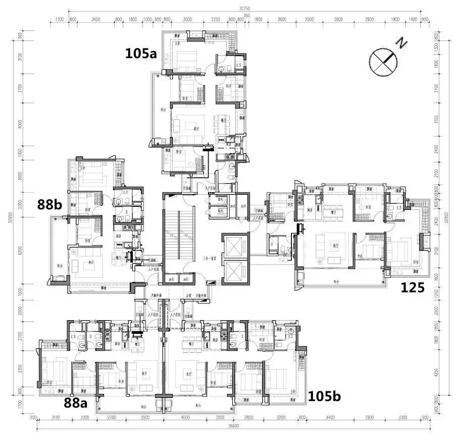 目前在售的主要为6栋及后续推出的组团,户型涵盖82㎡、88㎡、89㎡、106㎡、108㎡、125㎡、138㎡等多种规格。