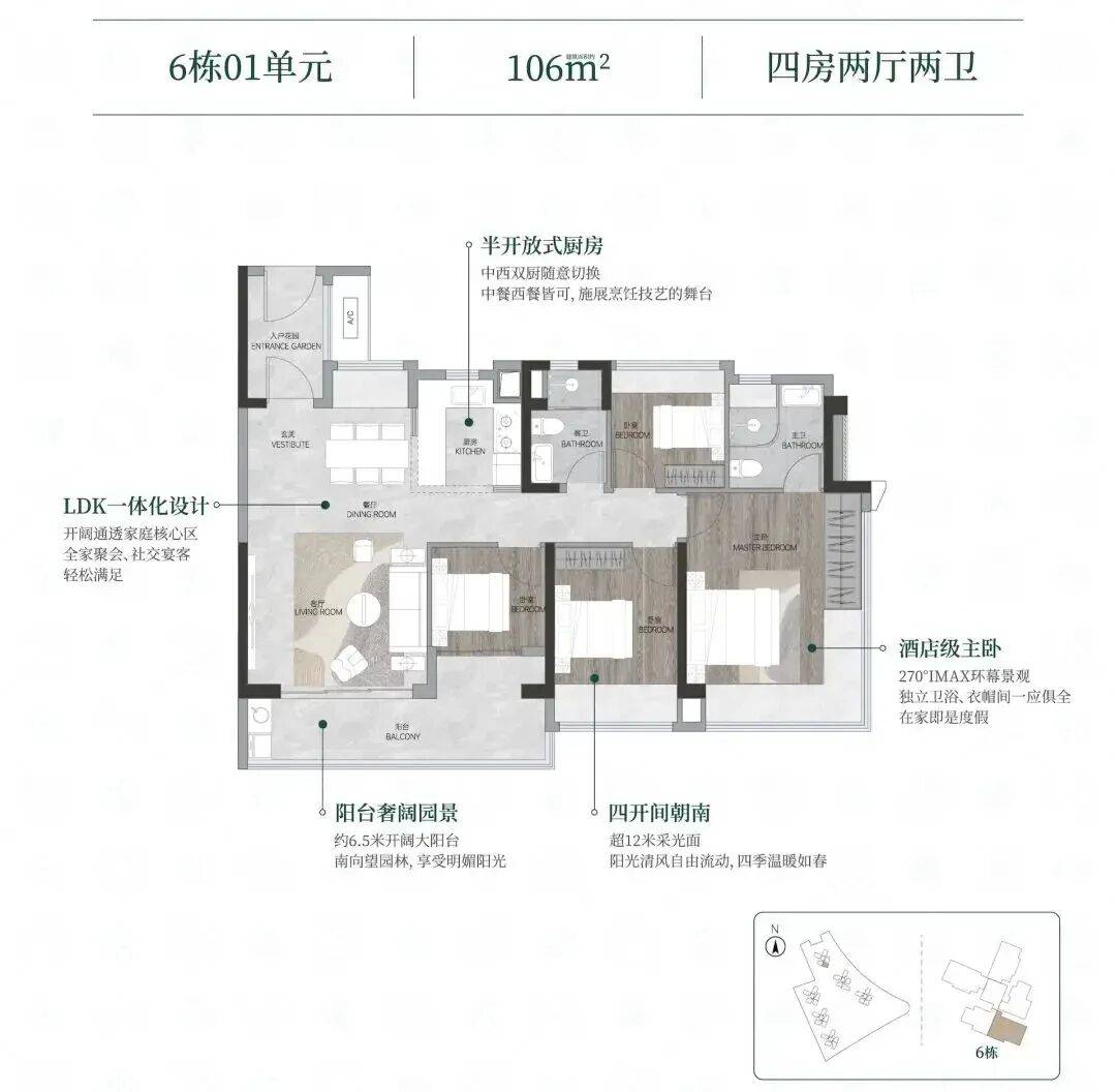 在户型设计上,我们坚持“实用至上、舒适为先”的原则。在售的建面约82-141㎡三至四房户型,均经过多次推敲与优化。82㎡的三房做到了四开间朝南,配备6.2米宽的大阳台,每个卧室都有大飘窗,小户型也能拥有大视野。88-89㎡的主力三房,进门设有小花园,餐厅客厅连通南向阳台,部分户型实现南北对流,通风采光极佳。106-108㎡的四房,采用南北对流设计,主卧配备270°景观窗,125㎡户型更拥有8.3米超大阳台,部分楼层可眺望江景。138㎡的双主套设计,充分考虑了多代同堂家庭的居住需求,互不打扰,温馨和谐。