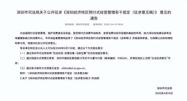 平博体育,平博体育官网,平博体育APP下载近日,深圳市司法局发布关于公开征求《深圳经济特区预付式经营管理若干规定(征求意见稿)》 意见的通告。通告称,为加强预付式经营管理,保护消费者合法权益,规范预付式消费市场秩序,发挥消费对经济发展的基础性作用,助力深圳加快建设具有全球重要影响力的消费中心,市市场监督管理局起草了《深圳经济特区预付式经营管理若干规定(送审稿)》并报我局审查。为保障公众的知情权和参与权,现面向社会公开征求意见。