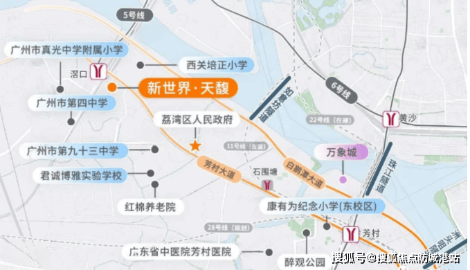 从城市规划来看,白鹅潭拥有世界级的滨水空间设计,如意坊隧道、沙面大桥等重大交通工程的建设,极大地缩短了与核心区的时空距离。地铁 5 号线作为贯穿广州东西的大动脉,其始发站滘口站的设立,更是赋予了新世界天馥独一无二的“始发站效应”,让每一位业主都能享受到从容不迫的通勤体验。