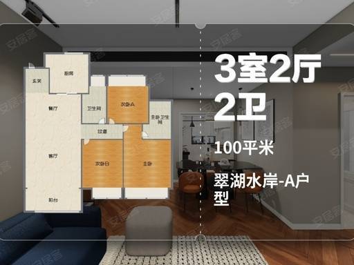 100㎡三房户型为二胎家庭、改善型家庭量身打造,空间更宽敞、功能更完善,配备双卫设计,彻底解决家庭早高峰抢卫生间的烦恼。户型方正通透,三开间朝南,采光面充足,室内常年阳光满溢;主卧套房设计,带独立卫生间与观景飘窗,保障主人私密性与舒适度;两间次卧空间宽敞,可分别作为两个孩子的卧室,或一间儿童房、一间书房 / 老人房,满足二胎家庭全周期居住需求;客餐连通阳台,公共空间开阔,家人互动、休闲娱乐更自在;双卫设计均采用干湿分离,干净卫生,提升生活效率。