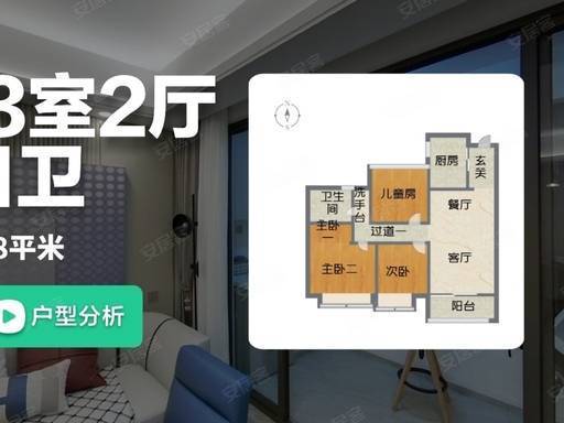 针对三口之家设计的 88㎡三房户型,得房率约 79%,空间利用率极高,以中小面积实现三房功能,性价比拉满。户型南北通透,全明设计,每一个空间都有采光窗,告别阴暗潮湿;客餐一体化设计,连接南向阳台,视觉上更显宽敞,日常家庭聚餐、亲友小聚都能从容应对;三间卧室布局合理,主卧带飘窗,两间次卧可作为儿童房、老人房或书房,满足一家三口居住需求,老人帮忙带娃、亲友暂住都有独立空间;厨房、卫生间布局紧凑,功能齐全,日常使用便捷。这款户型兼顾实用性与经济性,是三口之家改善居住的理想选择。